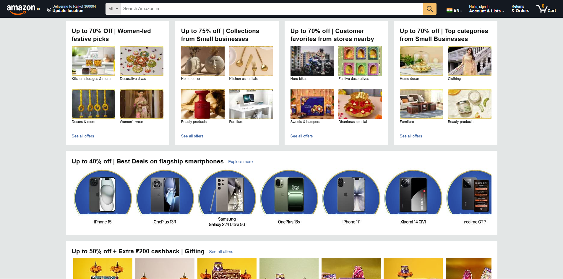 Amazon uses every trick in the book real-time inventory alerts, countdown timers, and contrasting colors for CTAs. The “Buy Now” button is always visible and emotionally charged with instant delivery promises.