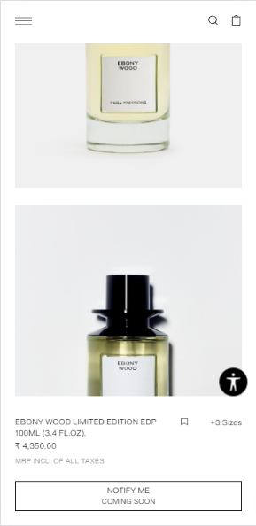 Zara’s mobile experience is smooth, large visuals, quick load, and easy checkout. Their “Add to Bag” button is big, bold, and perfectly placed for thumb reach.